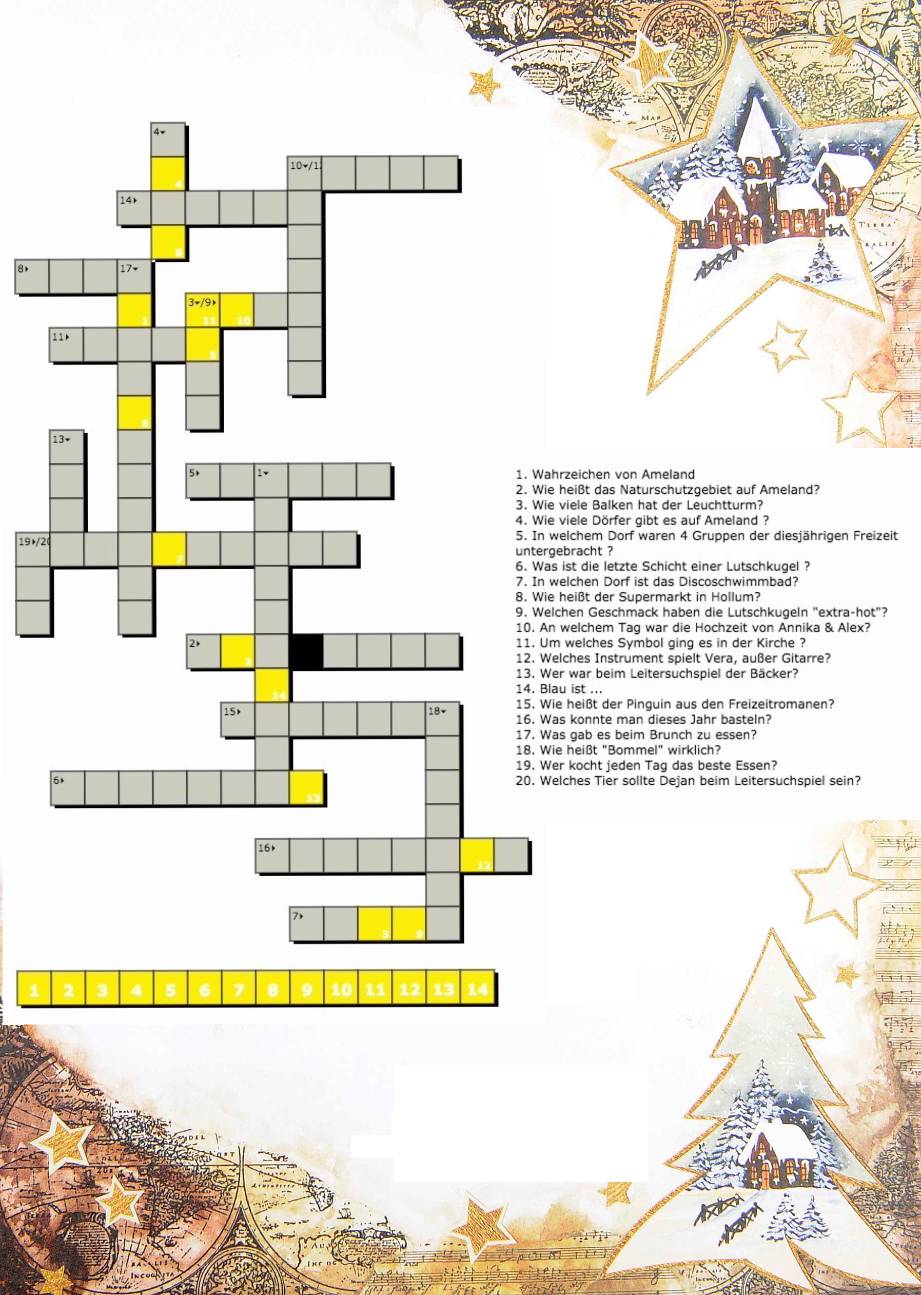 heute erwartet euch hinter dem 4. Türchen ein Kreuzworträtsel mit lauter Fragen rund um die Freizeit und Ameland.
