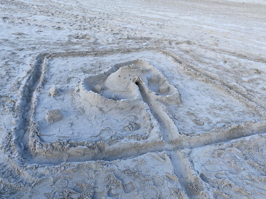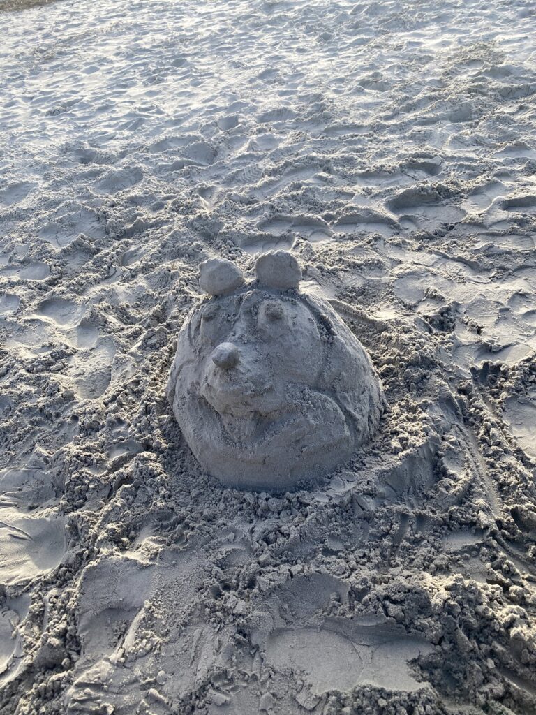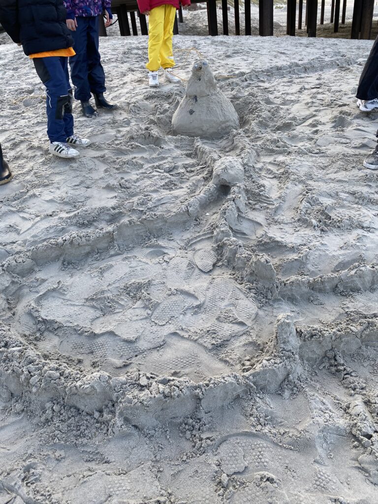 Nach der Mittagsstunde gingen wir dann an den Strand, damit die Kinder uns Disney Charakteren ein Haus bauen konnten. Daran hatten alle viel Spaß und es kamen Bauwerke zu Stande, von denen die Architekten und Architektinnen in ein paar Jahren sehr bekannt sein werden.
