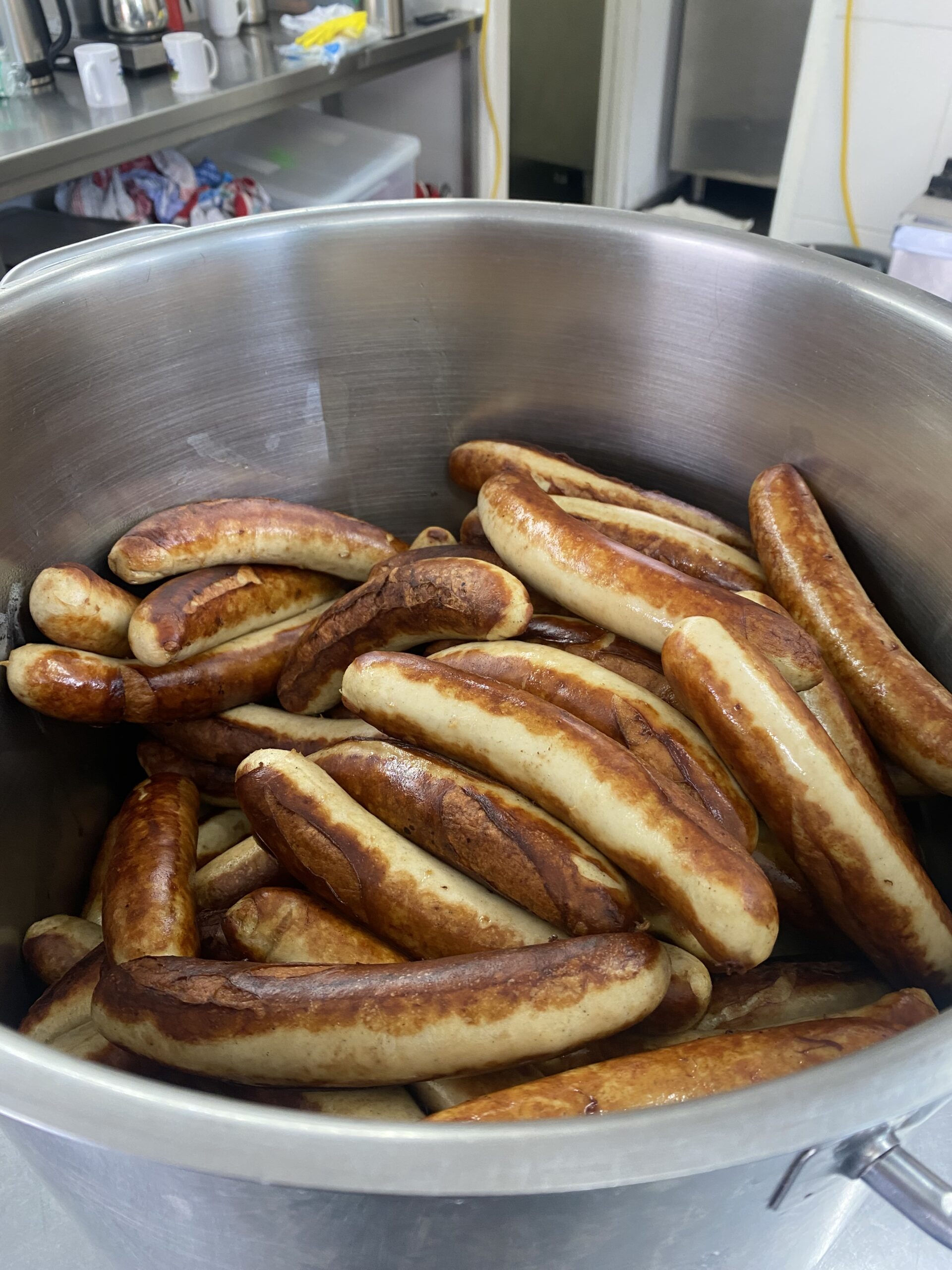 Danach gab es lecker Essen: Bratwurst, Kartoffelpüree und Erbsen & Möhren. Hier mal ein paar Kücheneindrücke: